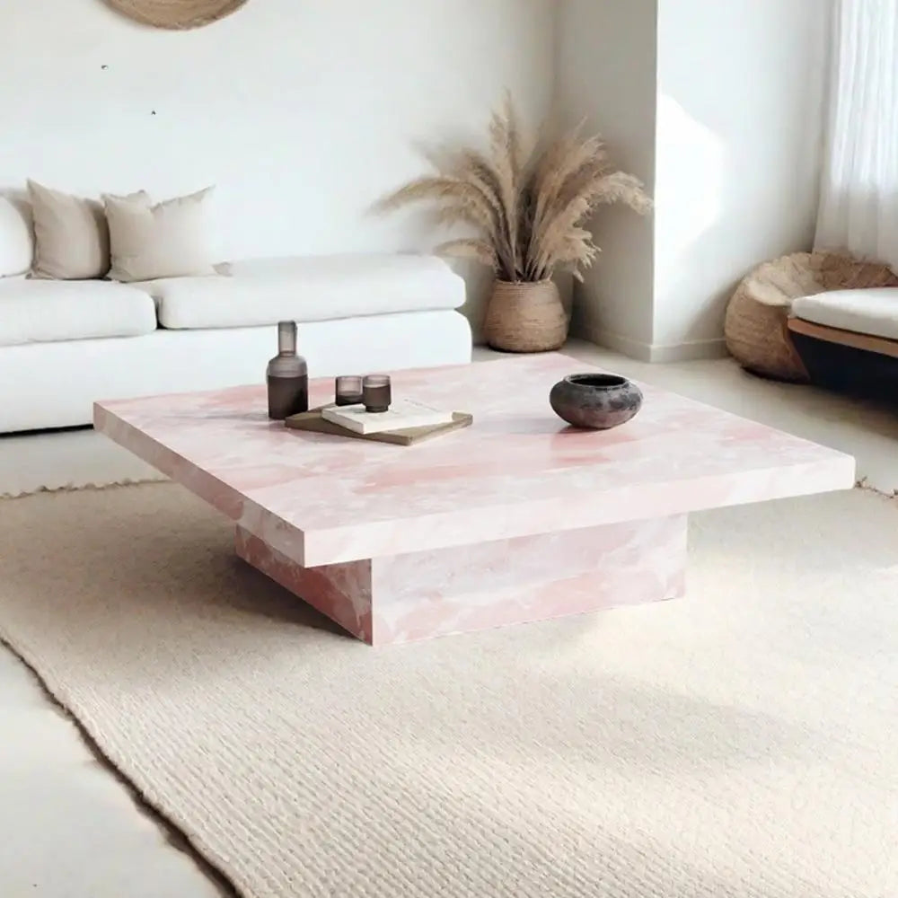 The Blush Jade Pink Coffee Table features a bold square silhouette with a refined, smooth finish and softly layered surface detailing. Its floating base design brings a sculptural, contemporary presence to any space, while the balanced proportions make it an effortless centrepiece. A standout choice for interiors seeking a calm, curated, and modern aesthetic.