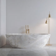 A freestanding oval bath crafted in refined marble, in the Glacier White finish, known for its pure white clarity and minimalist appeal. Hand-finished for a pristine surface, it offers an understated yet striking focal point for the bathroom. The bath includes an integrated overflow, central plug hole, and matching stopper for ease of use. Pair with the Glacier White Marble Basin and matching tapware for a pure, cohesive finish. Bringing contemporary elegance and timeless style to the bathroom.